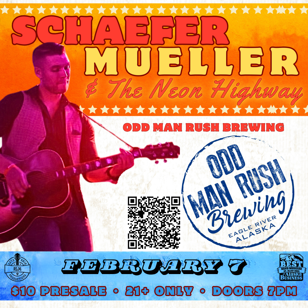 Join us at Odd Man Rush Brewing for a special night as Schaefer Mueller & The Neon Highway return with a refreshed set list and a new chapter for the band. Please help us welcome Gabrielle Martin on fiddle, who recently moved to Alaska and will be making her debut performance at Odd Man Rush with the band. Let’s pack the room, show her some love, and give her a big Alaska welcome. Frontman Schaefer Mueller is an Army Airborne combat veteran whose music is rooted in real stories and honest songwriting. Backed by The Neon Highway—a group of Coast Guard veterans, active-duty Air Force members, and local Alaskan musicians—the band delivers authentic country and country rock that keeps the crowd moving. We also want to send love to Roy, who is currently recovering. He’s on the mend, and we hope to have him back with us this summer. Expect a night of original music (including fan favorite Something to Drink About) plus crowd-pleasing country-rock staples.